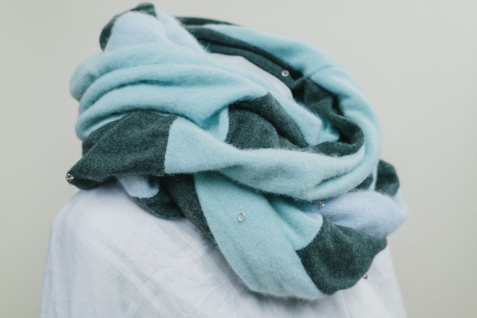 Nyx is 100% reused cashmere, entirely sewn by hand. The artist enriches this creative piece with Polish crystal beads to represent the stars that shined their light on Nyx’s powers, forces that unchain the person who wears it.